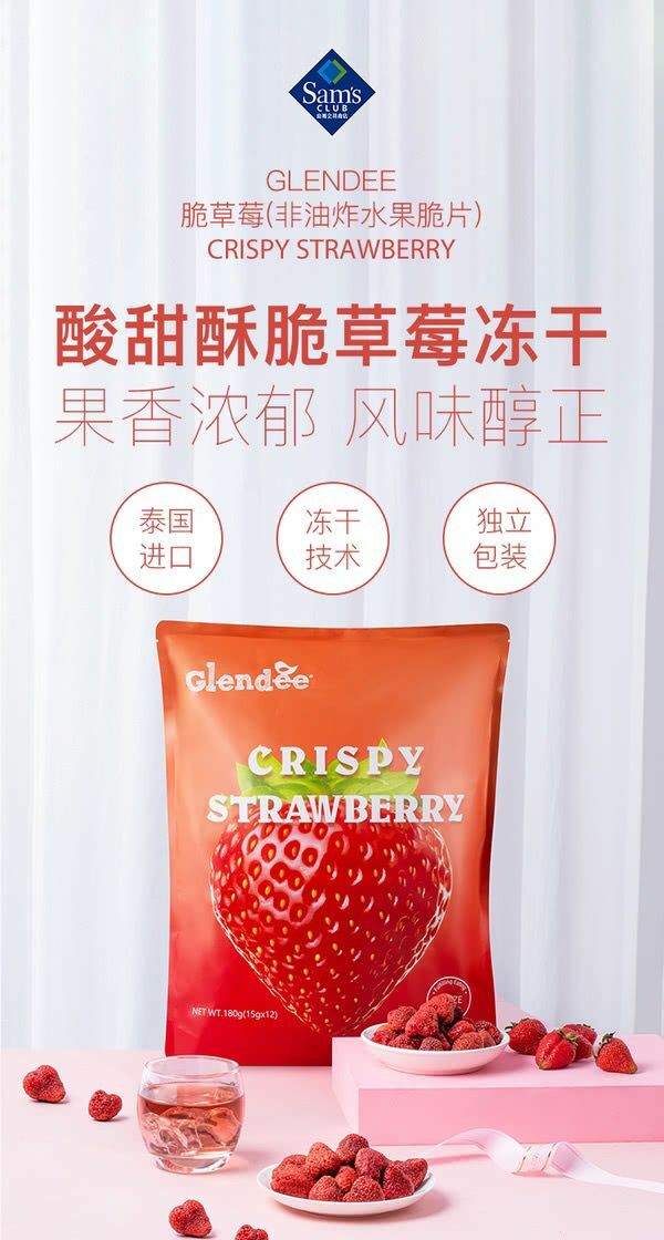 🔷山姆代購-GLENDEE泰國脆草莓(非油炸)180g(內有獨立包裝,約12包)