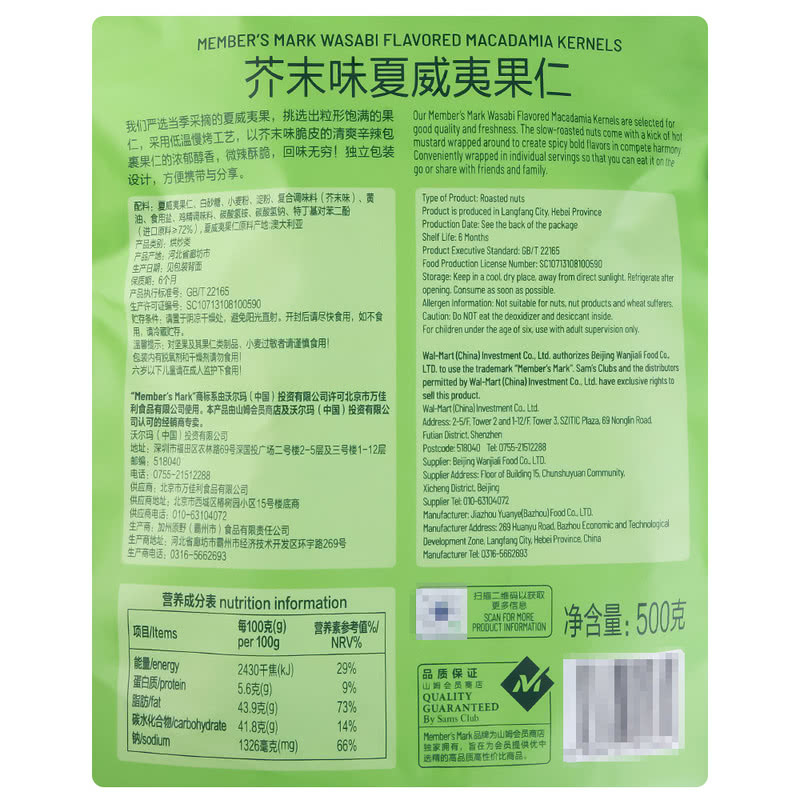 🔷山姆代購-Member's Mark芥末味夏威夷果仁500g(內有獨立包裝,約18包)