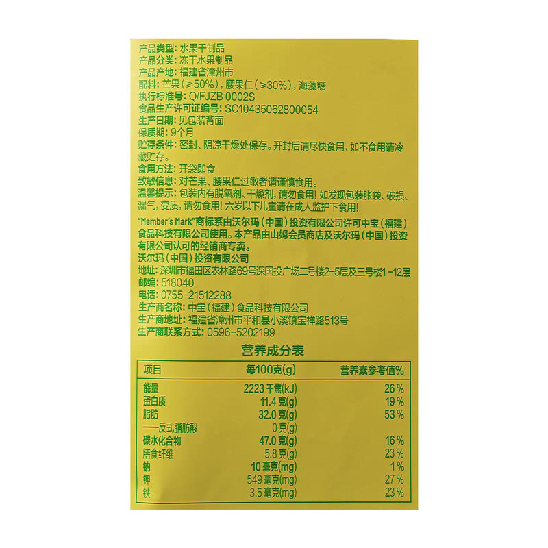 🔷山姆代購-Member‘s Mark凍乾芒果腰果仁300g(內有獨立包裝,約99包)